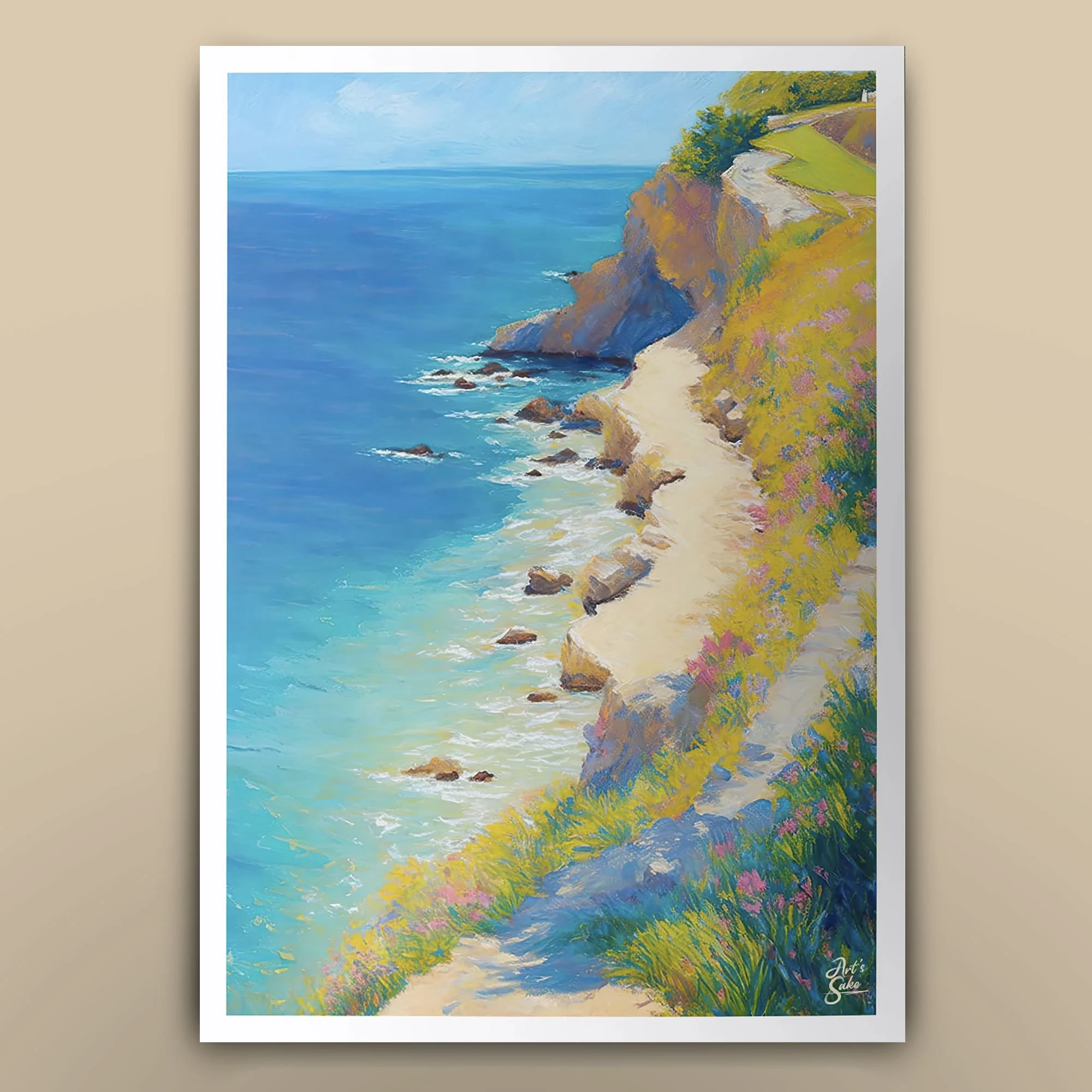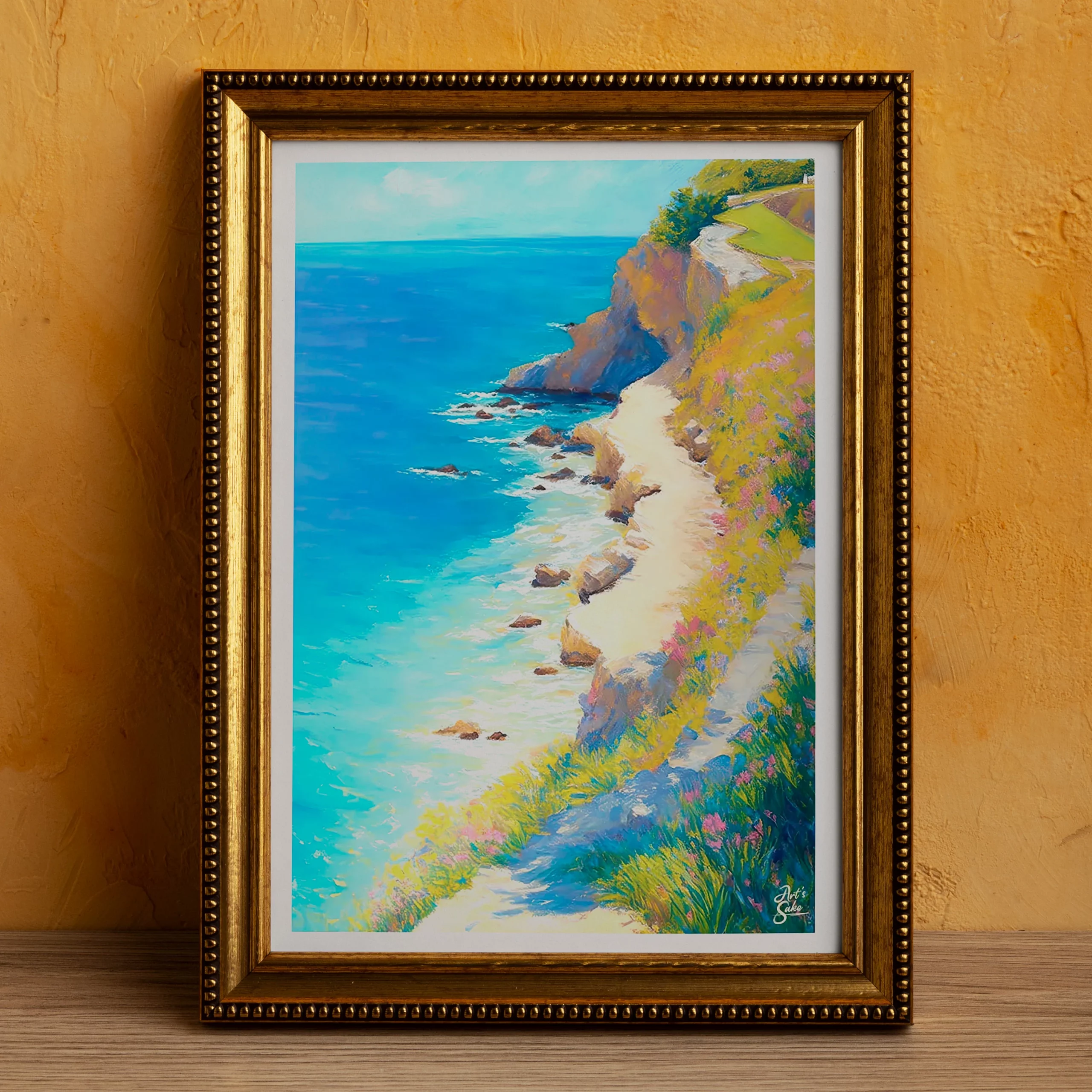 Immerse your space in the tranquility of a “Beautiful Azure Cornish Coastal Scene.” This original art print, a contemporary seascape wall art, is a high-quality masterpiece designed to be a perfect gift for friends or family.