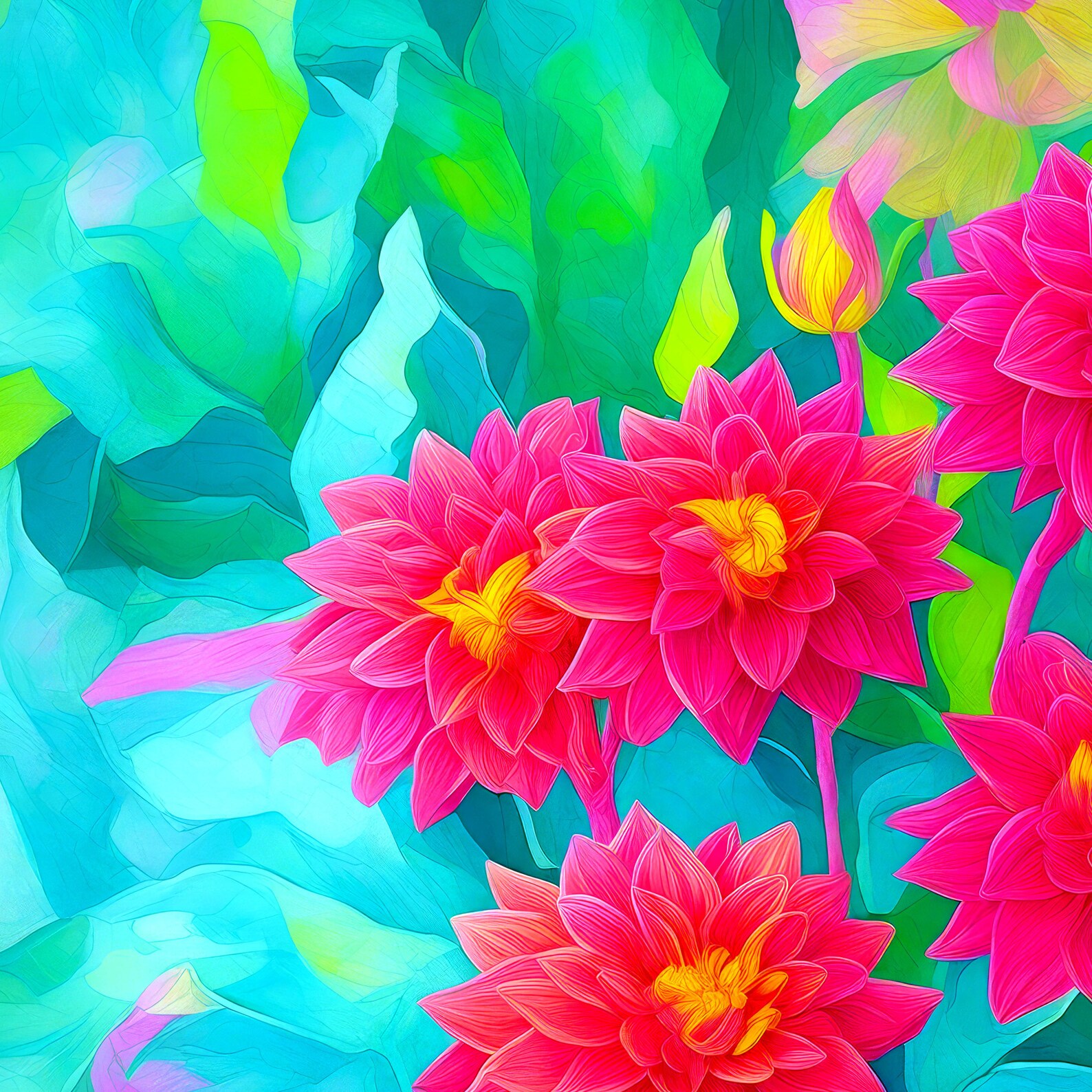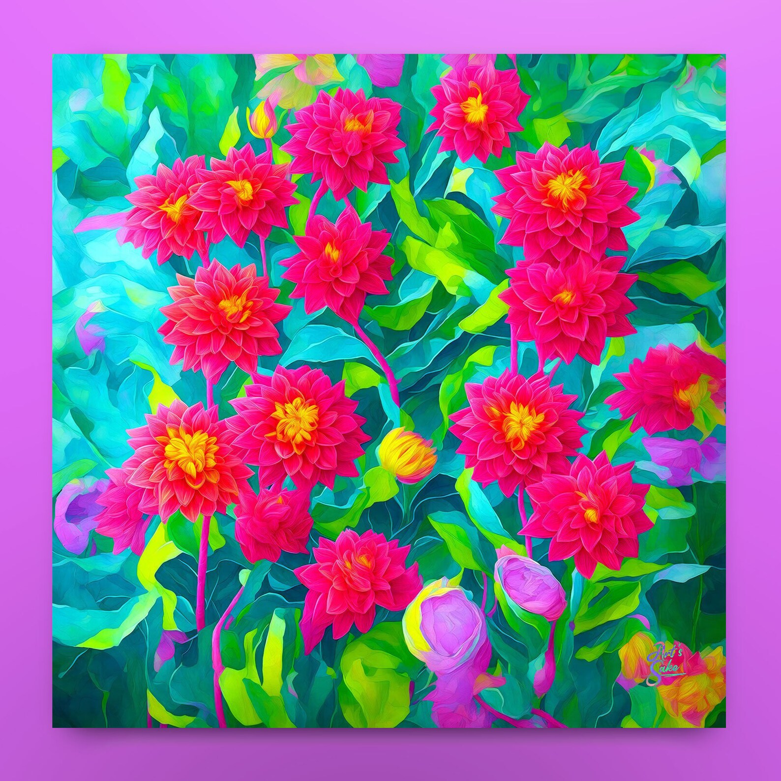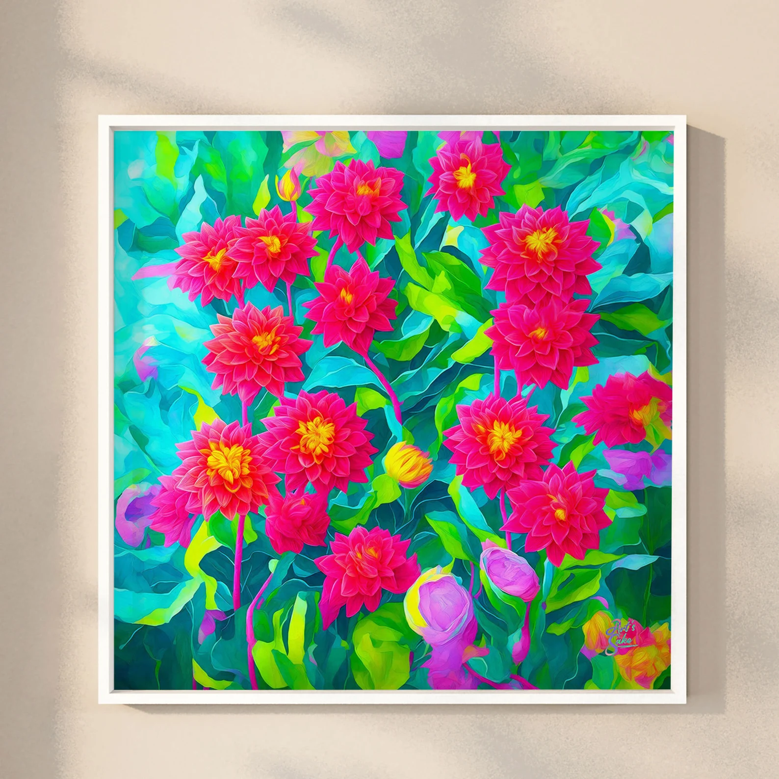 The combination of bright dahlia flowers and contemporary botanical art makes this piece a standout in home decor. Our botanical wall art captures the essence of nature, creating a unique and colorful floral decor that will transform any room.